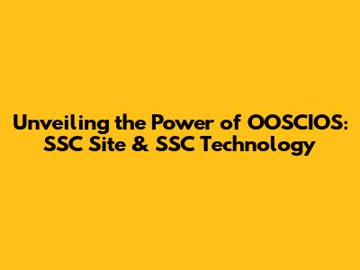 Unveiling The Power Of OOSCIOS: SSC Site & SSC Technology