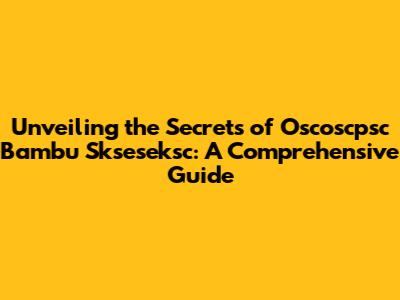 Unveiling The Secrets Of Oscoscpsc Bambu Skseseksc: A Comprehensive Guide