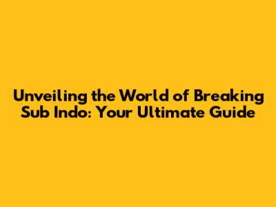 Unveiling The World Of Breaking Sub Indo: Your Ultimate Guide