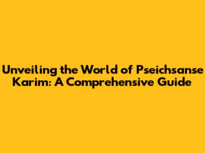Unveiling The World Of Pseichsanse Karim: A Comprehensive Guide