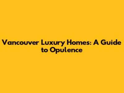 Vancouver Luxury Homes: A Guide To Opulence