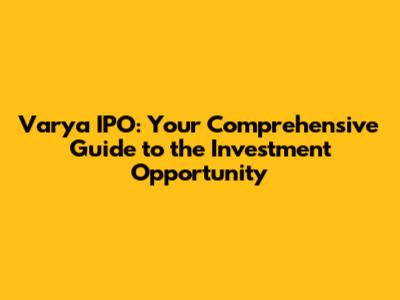 Varya IPO: Decoding The Investment Opportunity