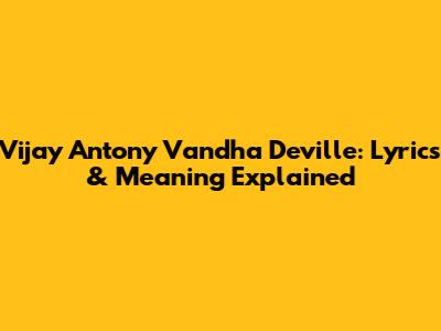Vijay Antony Vandha Deville: Lyrics & Meaning Explained