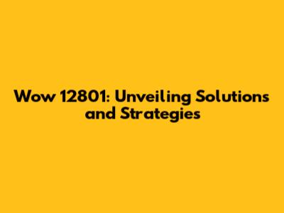 Wow 12801: A Comprehensive Guide And Troubleshooting