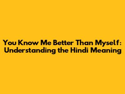 You Know Me Better Than Myself: Hindi Meaning